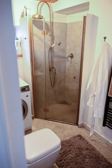 I v koupelně držíme náš non-toxic standard. Čeká na vás účelně zařízený prostor se sprchovým koutem, kde používáme a nabízíme pouze šetrnou ekologickou drogerii. Koupelna je vybavena bidetem a také pračkou, ke které máte k dispozici prací prostředky šetrné k vaší pokožce i šumavské přírodě. Pro děti máme nočník, prkénko a stoličku.